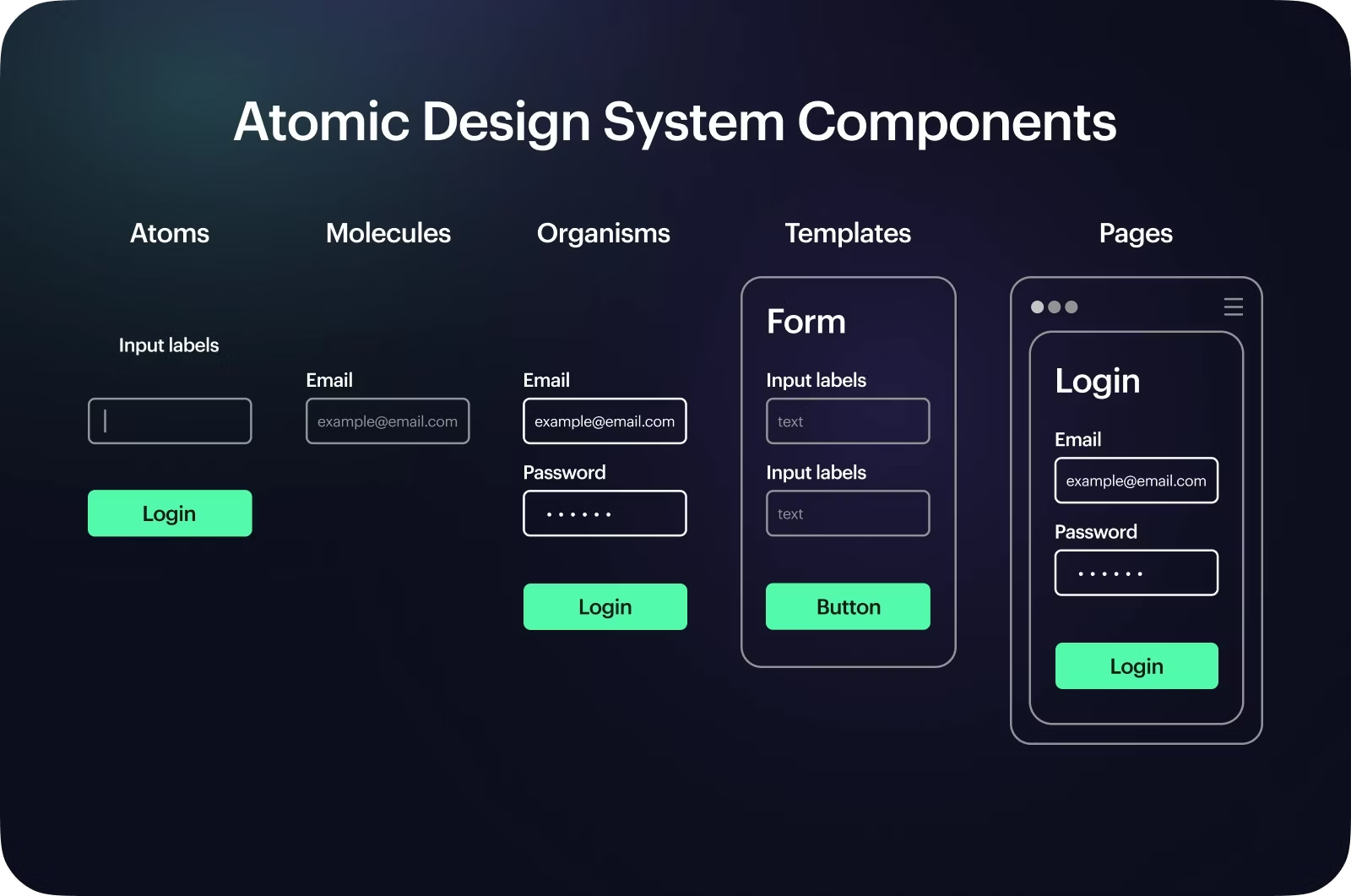 - Organs → components (buttons, fields, tables…)